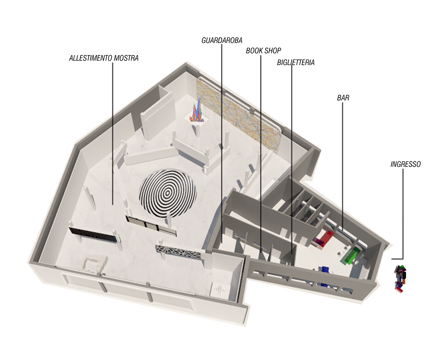 Nella prima parte del locale troviamo i servizi con un bar, un guardaroba e una biglietteria.